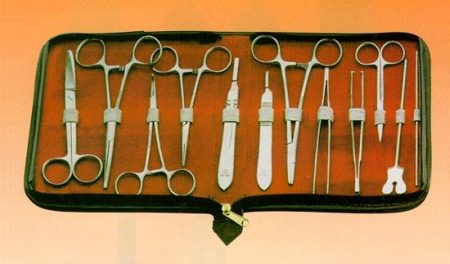 Adatto al pronto intervento e per uso ambulatoriale ; in morbido skay foderato internamente in velluto, contiene 12 strumenti: