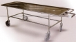 Barella portasalme realizzata interamente in tubo e lamiera di acciaio inox 18/10 AISI 304; piano superiore in lamiera di acciaio inox 12/10 sagomato, con bordi perimetrali arrotondati e rialzati. Crocera alla base con doppio rinforzo in tubo di acciaio inox diametro mm 25, completa di 4 ruote girevoli diametro mm 185 di cui 2 con doppio bloccaggio frenante. Completa di manubri per la guida.