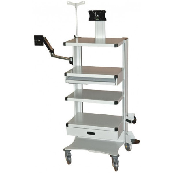 Struttura portante in estruso di alluminio con profilo portastrumenti e canalina passacavi in gomma, portata kg 150.
